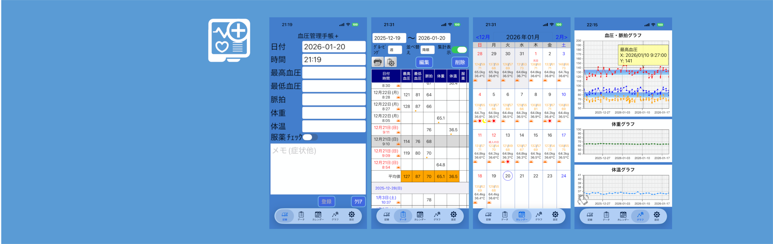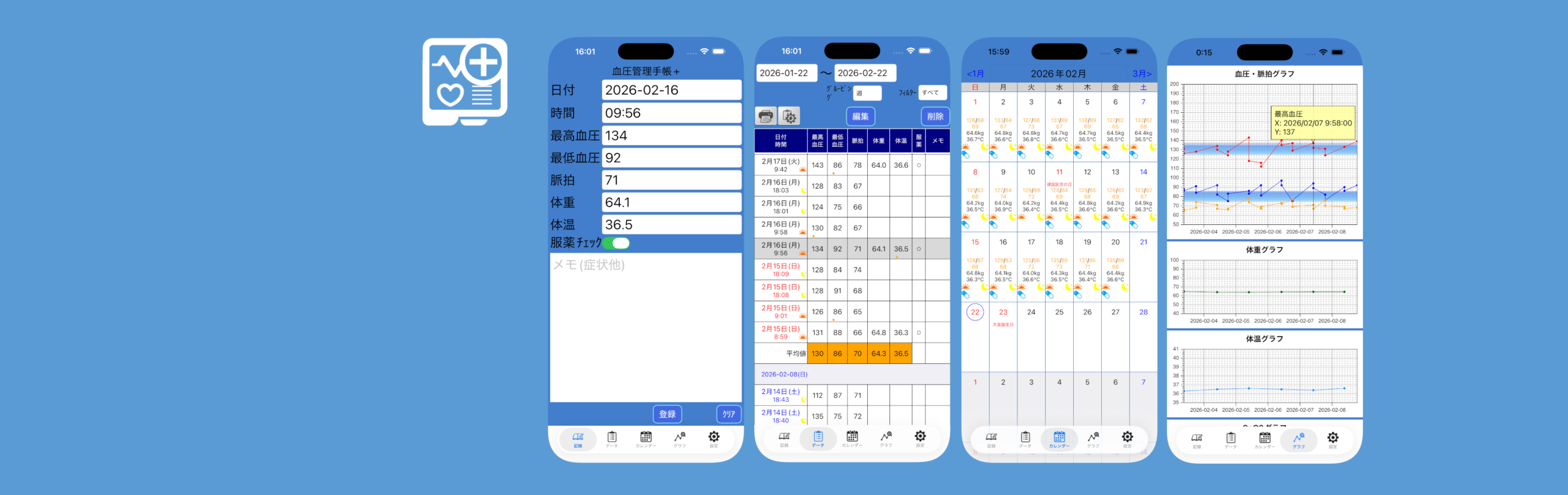 - 2024/7/9 血圧管理手帳LITE Android版(1.2.0) 公開